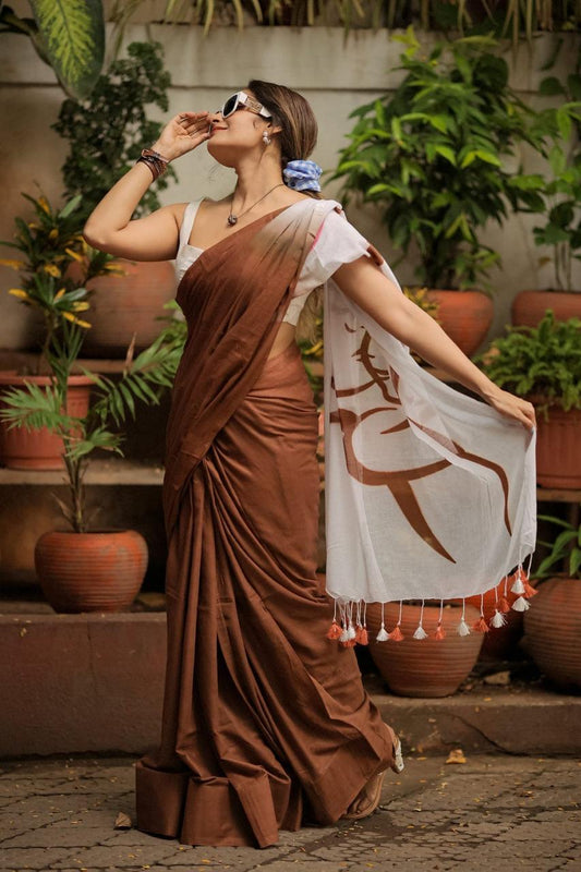 Bossy Brown Chumki in Box Mulmul (Saree)