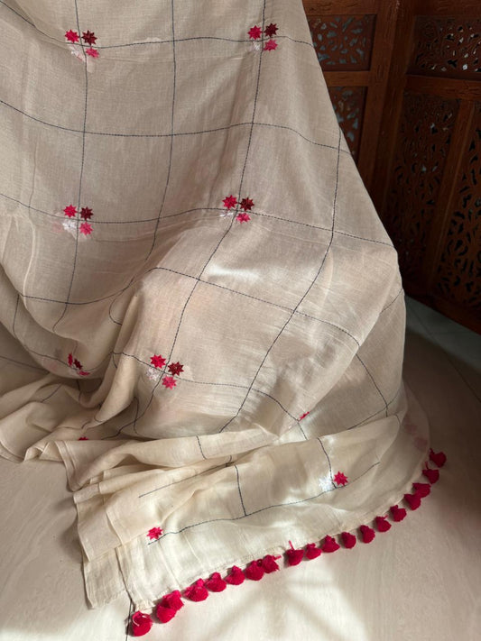 I customized and ordered this saree from Dhaga. I received the saree on 22nd day but worthy waiting because This saree is completely hand made and premium Mulmul cotton fabric.