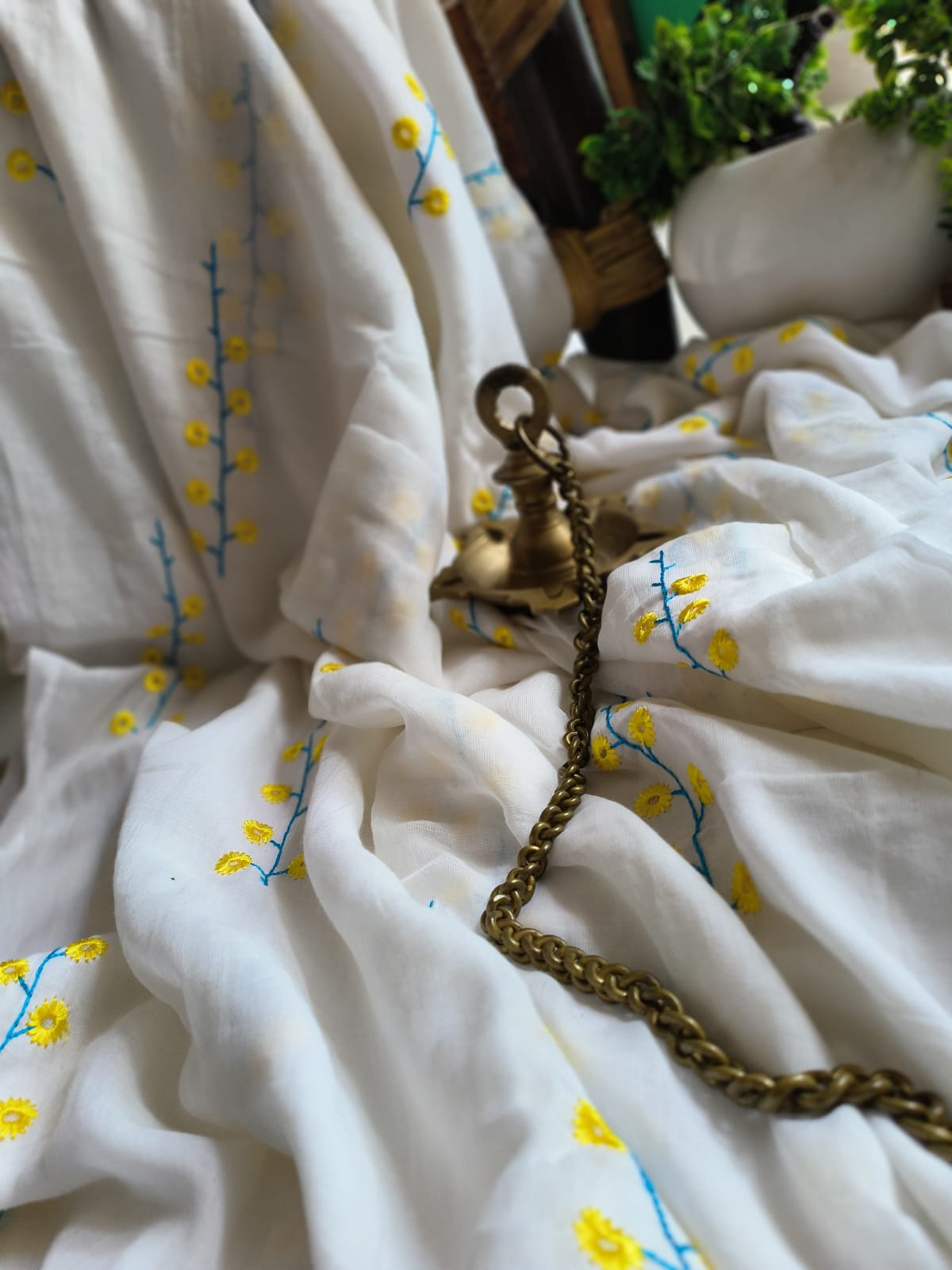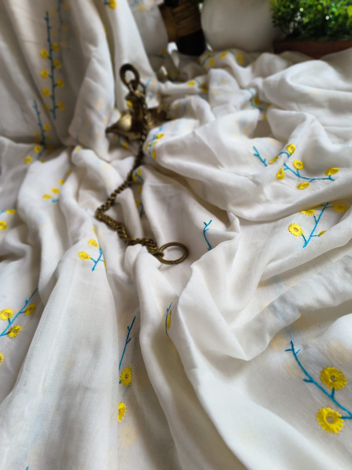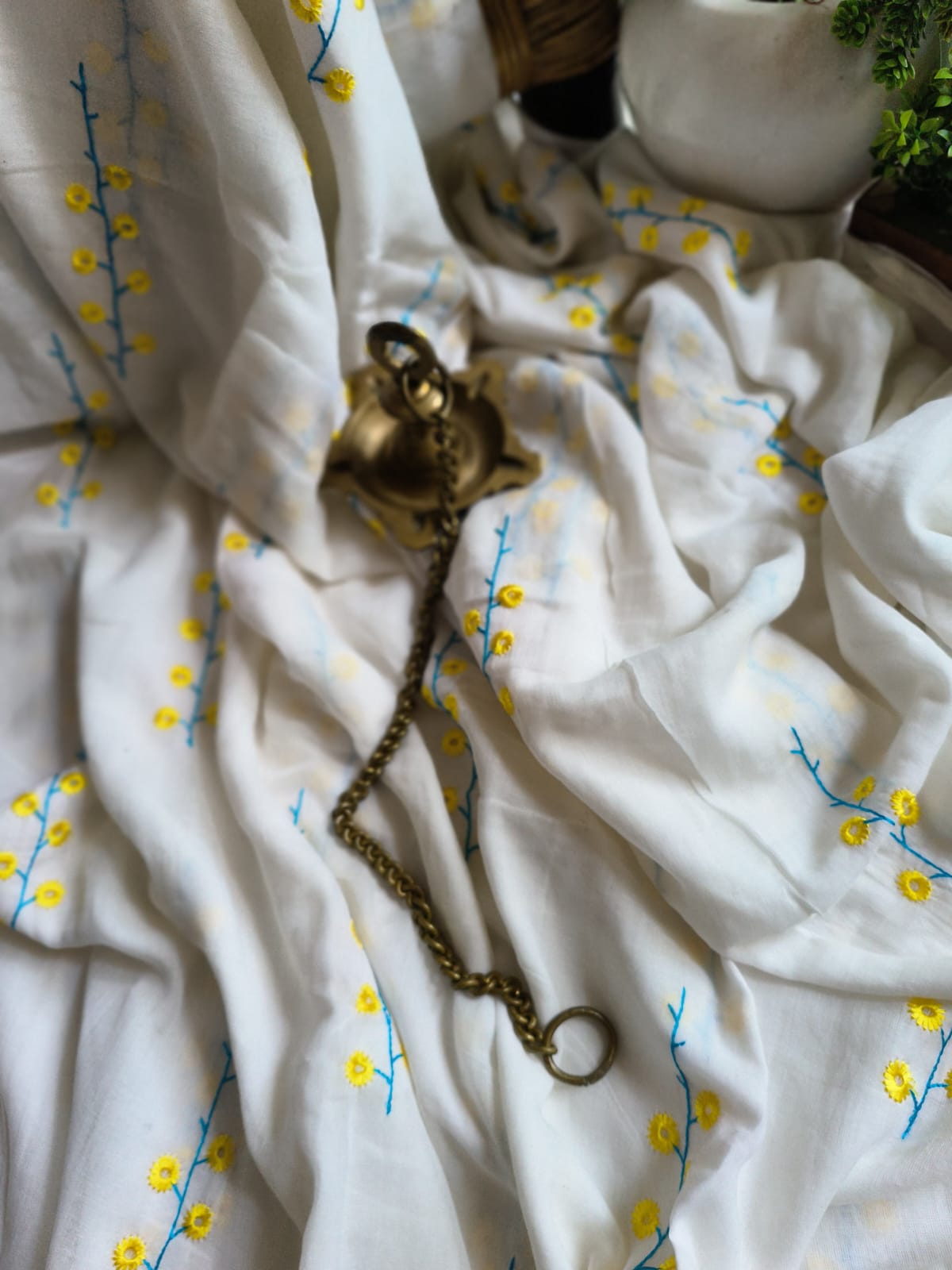 Daisy Embroidered Cindrella Tassel Mulmul (Saree)
