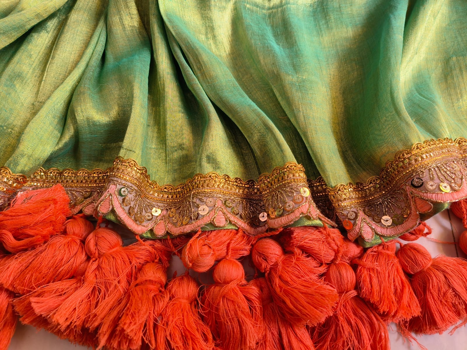 Saree fabric : Tissue with Designer Lace